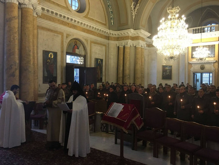 В церкви Св. Екатерины богослужение и обряд благословения офицеров и курсантов армянской армии совершили викарий главы Российской и Ново-Нахичеванской епархии по Санкт-Петербургу и Северо-Западному региону иеромонах Погос Варданян и иерей Аршак Назарян. На богослужении присутствовали представители офицерского состава и курсанты ВС Республики Армении, обучающиеся в высших военных учреждениях города, во главе с полковником Артуром Барсегяном, генеральный консул РА в Санкт-Петербурге Грайр Карапетян, член Церковного совета ААЦ СПб, благотворитель Грачья Погосян, председатель Армянской национально-культурной автономии Санкт-Петербурга Карен Мкртчян и представители армянской общины Санкт-Петербурга. В завершении службы отец Погос, поздравив присутствующих с праздником, передал им слова из послания Его Святейшества Верховного Патриарха и Католикоса Всех Армян Гарегина Второго, в котором, в частности, говорится: «Неустрашимый дух армянских военнослужащих воодушевляет весь армянский народ, направляя всех нас на служение нашей Родине с преданностью и без остатка, ревностно и с любовью друг к другу».